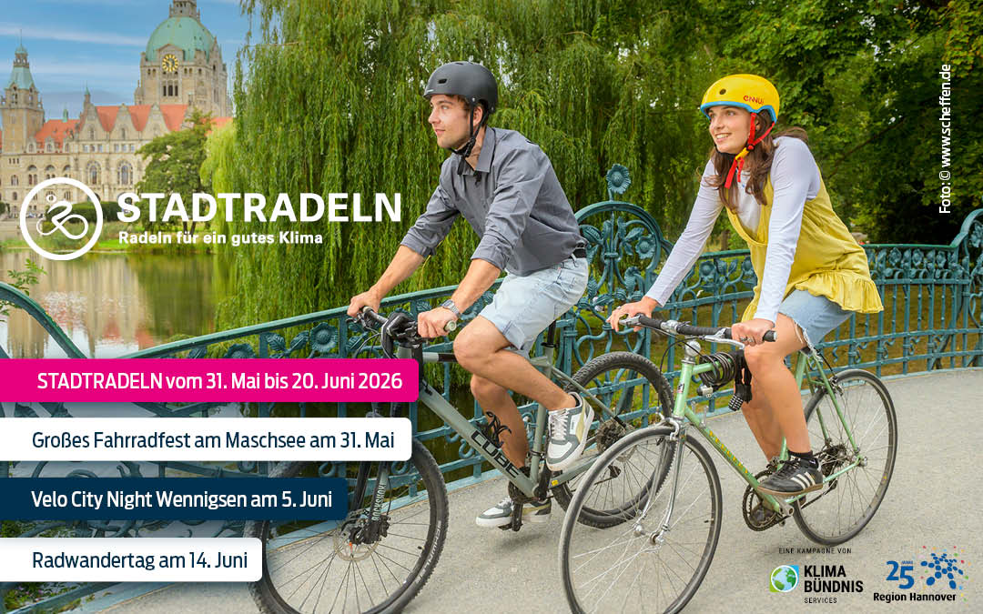 Mit dem neuen Plakatmotiv zum Stadtradeln Wettbewerb 2026 in der Region Hannover startet die Vorfeldkommunikation in allen Kommunen. Interessante Veranstaltungen und Aktionen warten auf die vielen Radfahrenden. Los geht es am 31.05.26 mit einem Fahrradfest. Wir empfehlen die Anfahrt zum Fest im Rahmen der ADFC Fahrradsternfahrt vorzunehmen. Wer noch nie bei einer Velo City Night dabei war, hat am 05.06.26 in Wennigsen die Gelegenheit bei der ersten Regions Velo City Night in Wennigsen teilzunehmen. Ein weiteres Tourenhighlight wartet am 14.06.26 auf alle Radfahrenden in der Region Hannover. Der 2. Regions Radwandertag führt diesmal in den Norden der Region. Viele weitere Touren gibt es auch im Tourenportal des ADFC zu entdecken. Lauter gute Gründe, um beim Stadtradeln dabei zu sein. Und lauter gute Gründe, das Fahrrad fit für den Frühling zu machen.